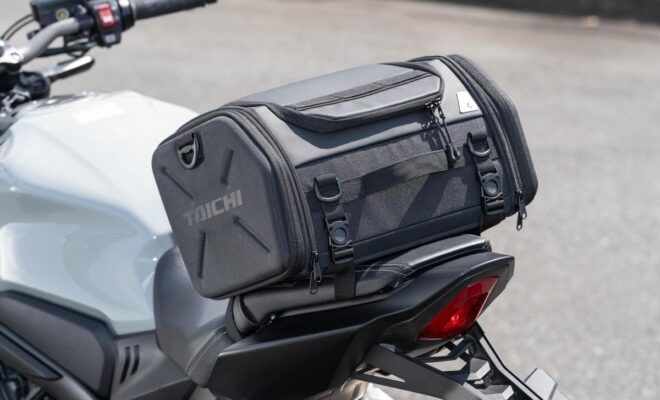 意外なほど軽いキックでの一発始動で目覚めた2ストV4サウンドは、期待どおりに荒ぶった。換装されたサイレンサーの放つ迫力ある音量も手伝い、全身が身震いする。