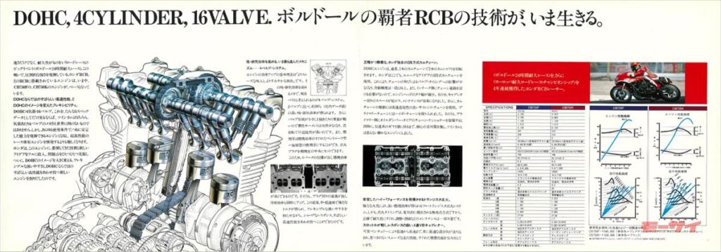 RCBレーサー直系をアピールした並列4気筒ツインカム4バルブエンジン