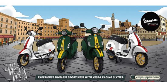 ベスパGTSスーパー150とスプリント150にレーシーなツートーン仕様が登場、イメージカラーのアパレルも同時にスタンバイ