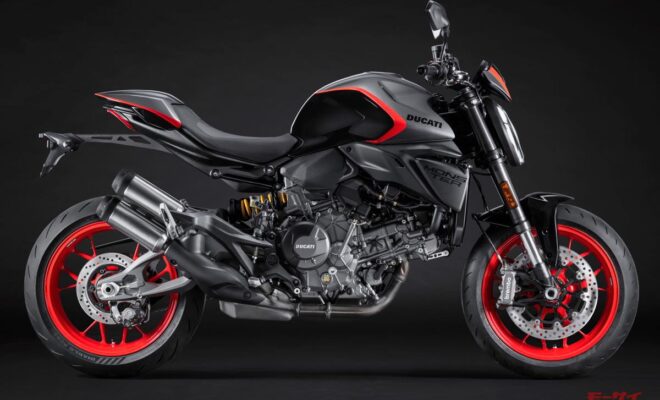 【ドゥカティ新型モンスター+】にグレー×ブラック+レッドストライプの新色「スポーツカラー」が追加され、近日登場
