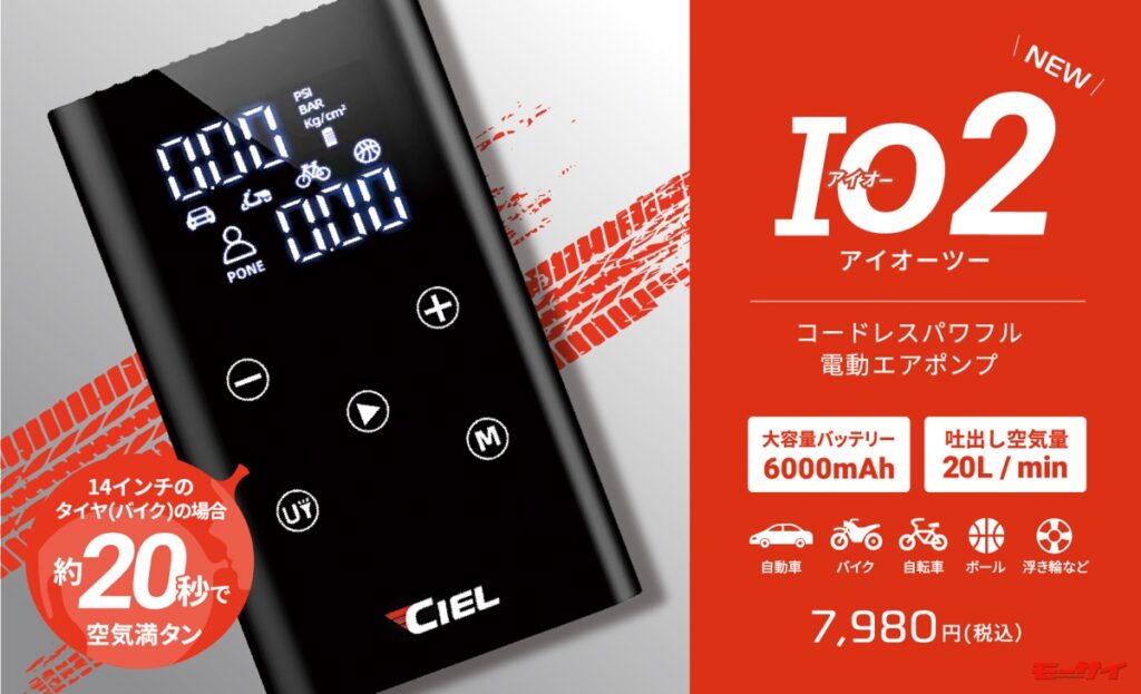 約35秒で18インチタイヤを充填! 【CIEL】「コードレスパワフル電動エアポンプIO2(アイオーツー)」が新発売
