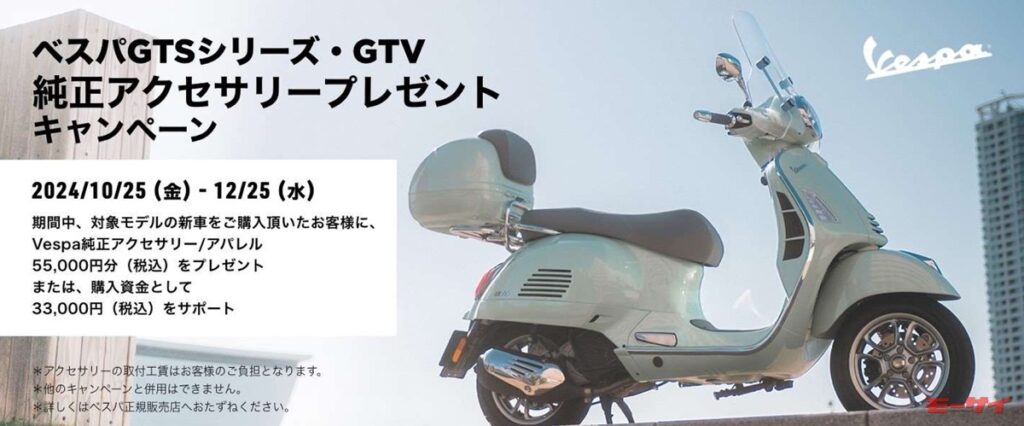 【ベスパ】に純正パーツを付けて購入したいなら今!プレゼントキャンペーン中だ!統一感ある装着はオシャレでいいね!