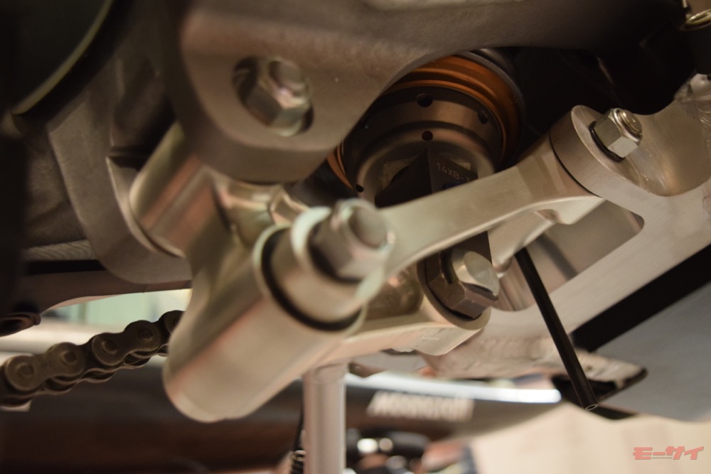 CRF450ラリーのリヤサスペンションのリンク機構(東京オートサロン2020展示車)