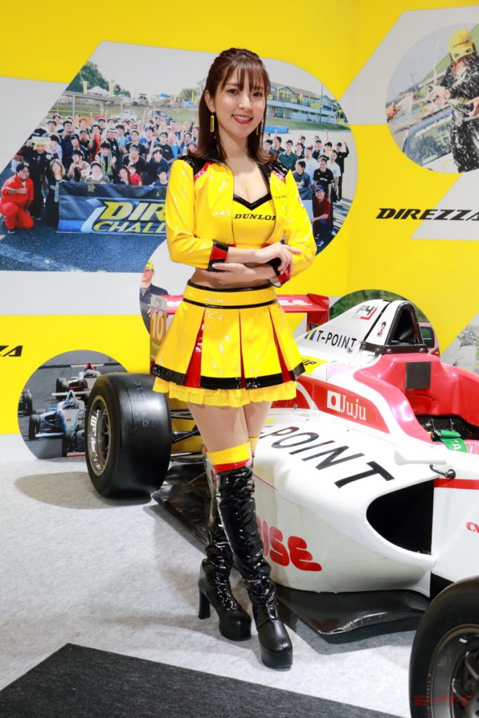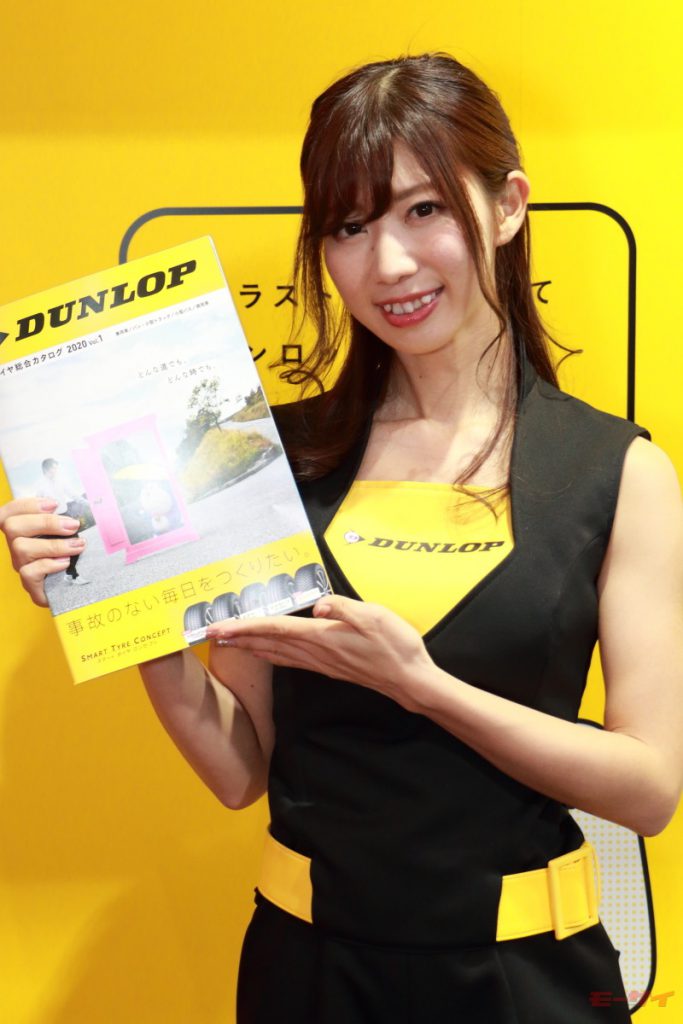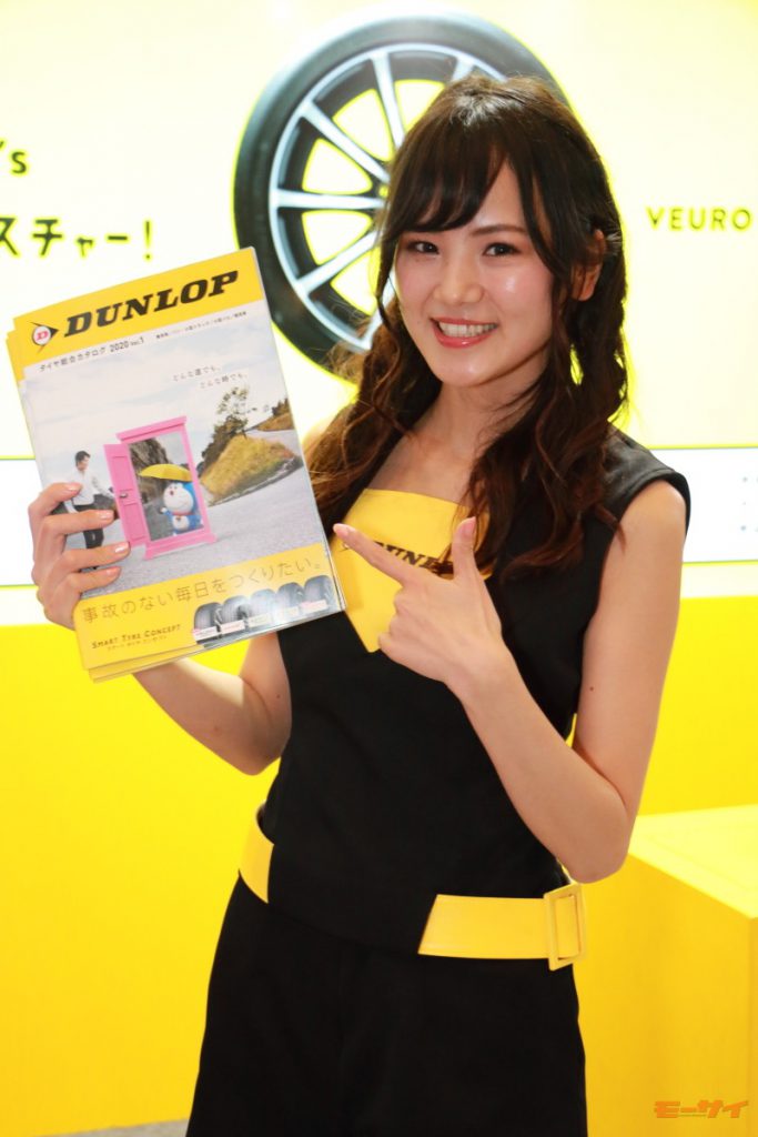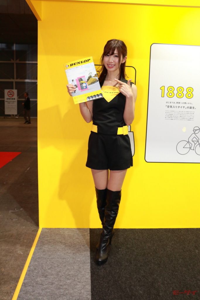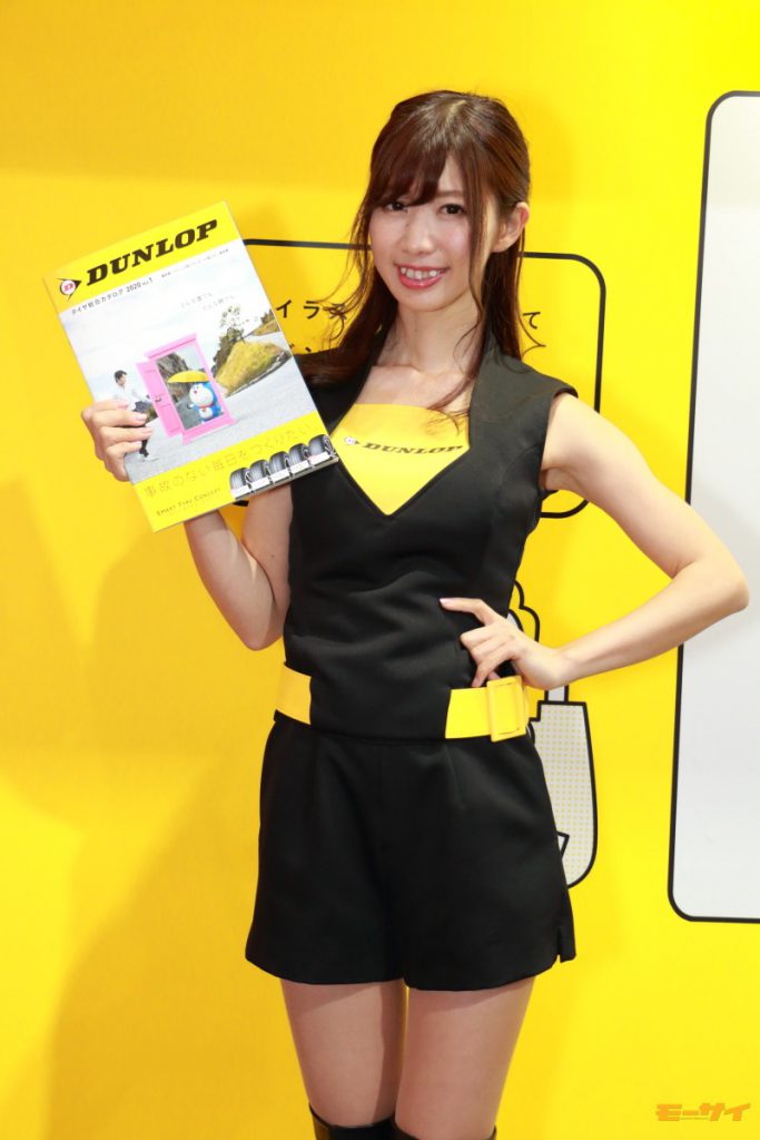 ライダーにもおなじみのイエローに彩られたダンロップブースの美女たち【東京オートサロン2020】