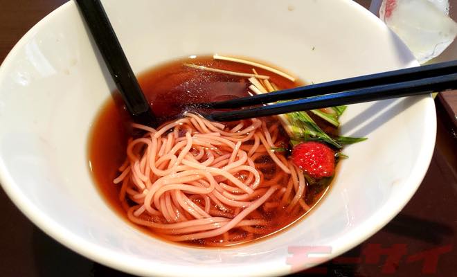茨城に新名物「苺農家のいちごらーめん」爆誕! 真っ赤なスープ&スライス苺のラーメンを食してきた