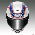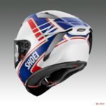 ベースとなる「X-Fifteen」はSHOEI最新のレーシングヘルメット。圧力解析から空気抵抗の少ない形状を割り出し、それをベースに自社大型風洞設備での検証を重ねてブラッシュアップされている。350km/hを超える超高速走行でも安定した空力性能を発揮する完全新設計のエアロフォルムをまとう。ヘルメット内部のエアルートは従来モデルに比べ1.5倍以上溝を深くし、またリヤスタビライザーのトンネル部分にアウトレットホールを装備することで高い換気性能を実現。上方視界の広さがMotoGPライダーからも高く評価されている。