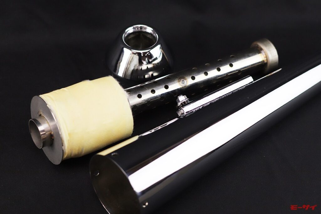 独自構造で高耐久・適度な音量を実現した。1室膨張室+グラスウールを採用し、ウールだけに頼らない構造で経年劣化に強く、急なスロットル操作でも高い消音効果を発揮する。音質にもこだわり、雑味を抑えたクリアな排気音とした。オプションで専用の追加バッフル(別売り)も用意されていて、さらに静音化することができる。工具1本で簡単に取り付けが可能。