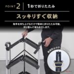 ※取っ手を持ち上げるだけで簡単に折りたたみ可能で、折りたたみ後は自立保管が可能