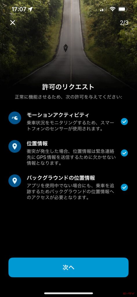 パックトーク プロの象徴とも言える機能のひとつが衝撃検知センサー。衝撃感知から30秒以内にインカム本体のいずれかのスイッチかスマホに表示されるキャンセルボタンを押す、あるいはマイクに向かい「無視」と言わないと、あらかじめ専用アプリに登録した緊急連絡先に、カルドのクラウドからインカムがある位置を示すGPS座標とメッセージが送られるというものだ。