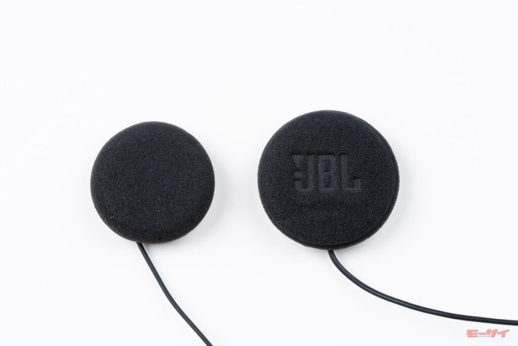 左が一般的なインカム用スピーカー。右がパックトークプロに付属するスピーカー