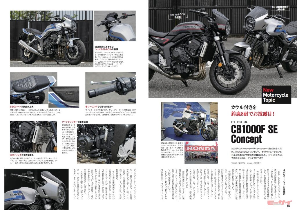 そのほか、発売が待たれるCB1000F SE コンセプトの続報や、スズキ GSX-8T/TTなどの試乗レビュー、ライディングパンツの特集など盛りだくさんの内容です。