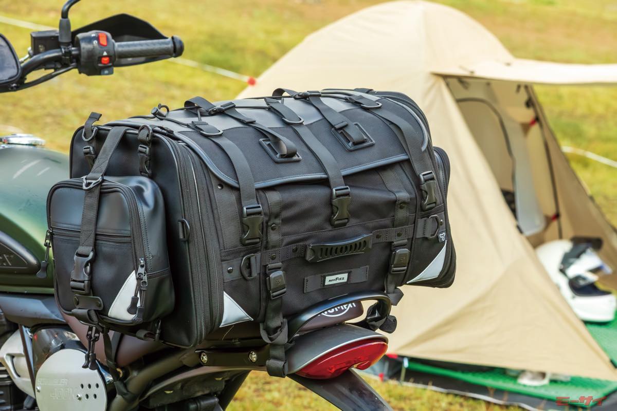 モトフィズはフィールドシートバッグ&キャンピングシートバッグ系を刷新。今回はシリーズ最大モデルのキャンピングシートバッグXLをキャンプ旅で試した。