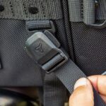 新型のバックルは接合部が回転するため、斜めに引っ張っても固定する力をうまくバッグに伝えてくれる。付け外しはワンタッチで力もほとんど要らない。