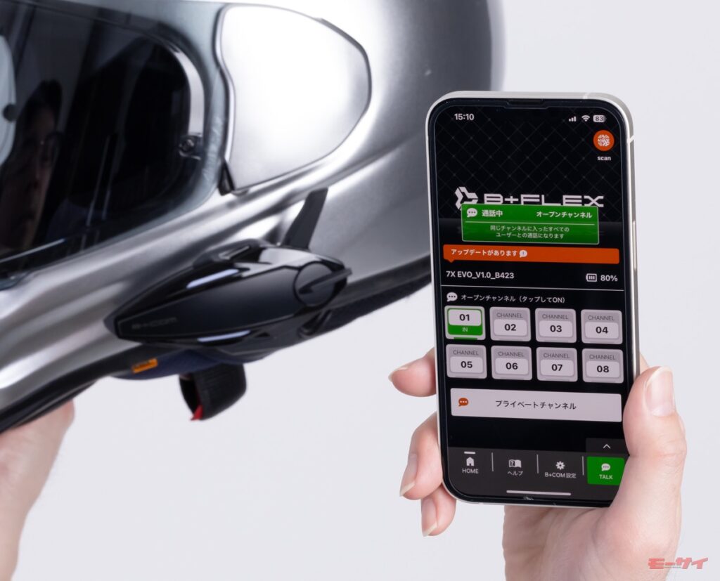 B+COM(ビーコム)シリーズのハイエンドモデルが約8年ぶりに刷新される。最大の変更点は通信方式。従来モデルではブルートゥース通信だったのが、新型「7X EVO」(セブンエックス エボ)で採用されたのはメッシュ方式。