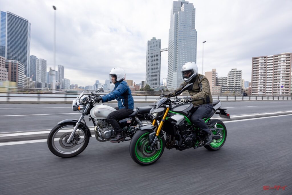 走行中に感じるのは音声のクリアさ。さすがB+COM! 路上テストは2人で行ったが、これが20人まで可能(プライベートモードの場合。オープンモードは無制限)となると、大概のマスツーリングをカバーできるだろう。距離が離れてオンライン通話に切り替わるときも、何のアクションも要らないのが便利!