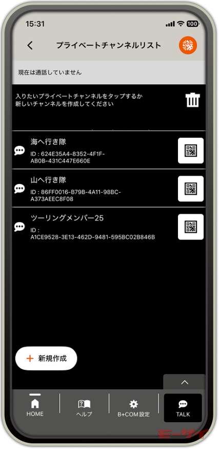 通信するチャンネルはアプリからワンタッチで切り替えることができる。プライベートチャンネルはQRコードやURLを伝えることで簡単に招待可能。また音量も、音声ガイダンスやインカム通話、オーディオなどでそれぞれ細かく設定できる。