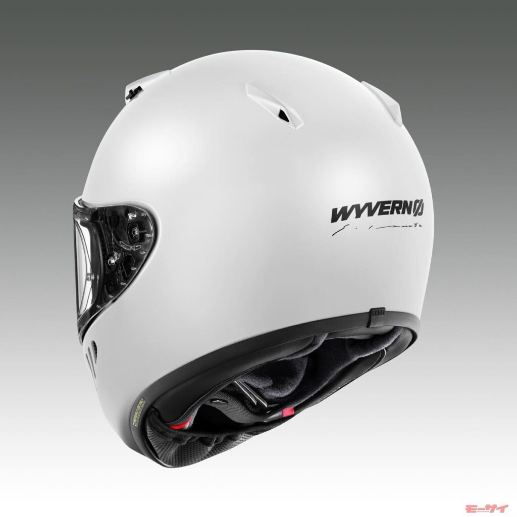 SHOEIのWYVERN Ø(ワイバーン・ゼロ)は、WYVERNシリーズとしては約14年ぶりに復活された、唯一無二の硬派なルックスを魅力とするフルフェイスヘルメット。伝統的なシェル形状にデザインされているが、シールド機構はセンターロックの最新仕様で、防曇シートも標準装備するなど、快適性や静粛性は現代的だ。