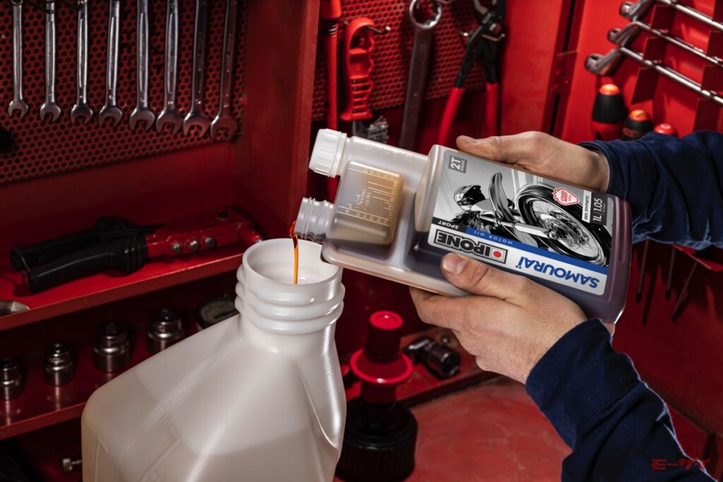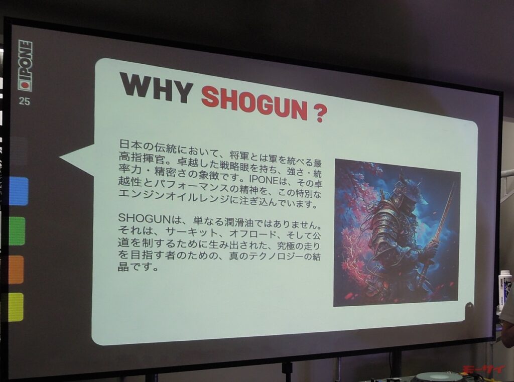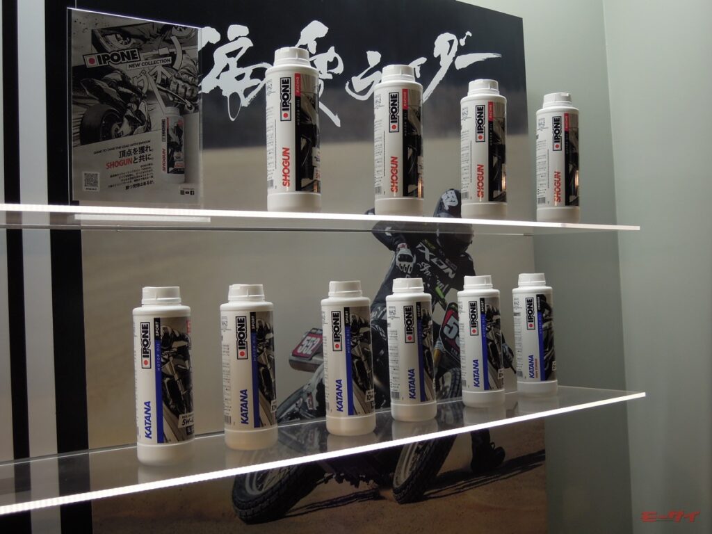 日本国内におけるイポン製品の取扱いについての具体的な予定としては、バイク用品ECサイト Webike(ウェビック)および国内正規代理店を通じて、2026年5月1日より順次展開されるとのこと。製品ラインアップと税込み標準小売価格は、4ストロークエンジン用では、レーシングレンジの全合成油「SHOGUN」が3960円(内容量1L。粘度は5W-40、10W-40、10W-50、15W-50を用意)、スポーツレンジの全合成油「KATANA」が3190円(内容量1L。粘度は10W-40、10W-50、5W-40、10W-60、15W-50のほか、20W-50の「KATANA HIGH TORQUE」を用意)、アドバンスドレンジの部分合成油「R4000」が2618円(内容量1L。粘度は10W-40、10W-50、15W-50を用意)。2ストロークエンジン用では、レーシングレンジの全合成油「SHOGUN 2R」が4950円(内容量1L。混合専用)、スポーツレンジの全合成油「SAMOURAI」が4180円(内容量1L。分離・混合両対応)となっている。