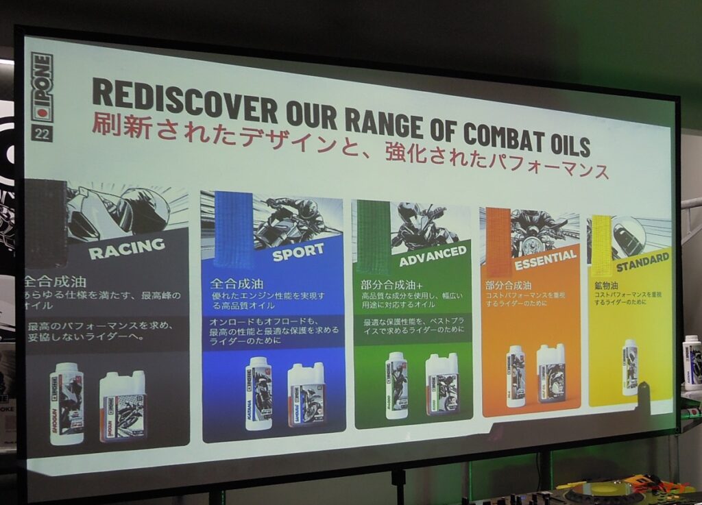 このイポンの日本国内における取扱いを担うモチュールジャパンは、モータースポーツファンを中心に広く名を知られたモチュールブランドのオイルの日本国内における総輸入販売元である。なぜ同じオイルの分野でモチュールとは別のブランドの取扱いを開始したのだろうか?というのは疑問に思われるところだが、ローンチイベントにて、その理由が説明された。ひとつは、モチュールとイポンはブランドのキャラクターが異なるということ。また、どちらもフランスメーカーでありベトナムに生産拠点を持っている縁があったのもきっかけだというが、製品はそれぞれ独自に開発されたもので、決して同一製品のパッケージ違いではないという。モチュールジャパンは今回のイポン製品の取扱い開始により、より幅広いユーザー層のニーズに応えるとともに、二輪車向けアフターマーケットにおける製品選択肢の拡充を図るとしている。