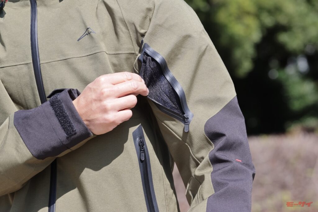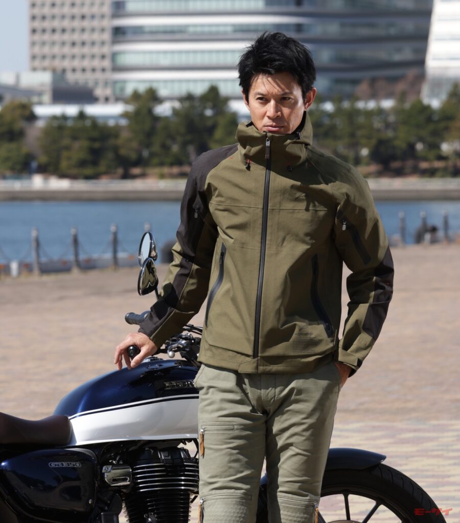 同社のライディングジャケットでは最高レベルの3万mmという初期耐水圧を実現し、止水ファスナーやシームテープも採用して防水性を高めているのも注目点。二重のフロントファスナーを開ければ大型エアインテークになるので、気温の高い時期にも対応可能だ。