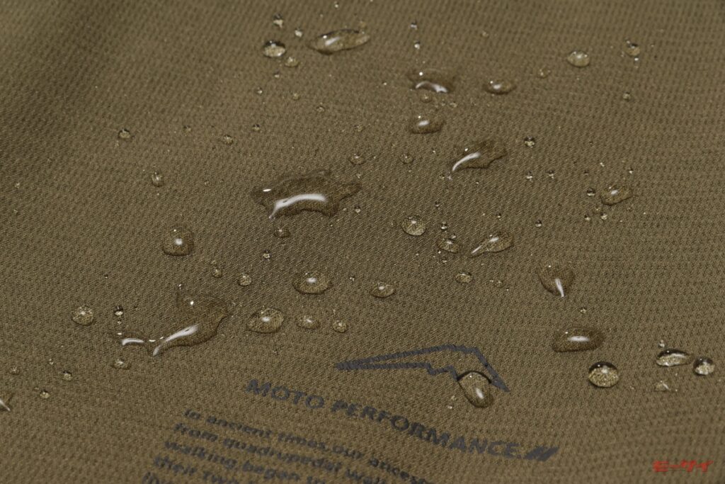 中間層に防水透湿フィルムを挟み込むが、外側の生地にも撥水性があり、多少の水ぬれならばここで防げる。裏地をなくしたことと、生地のストレッチ性による着心地の軽さは、バイクを降りてからも着続けるときのメリットになるはずだ。
