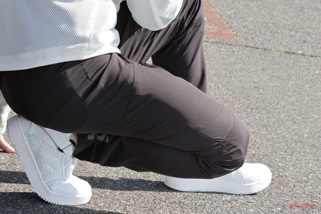 一方、上部のジャージ生地は柔らかく、肩周りの可動性を妨げないのはうれしいかぎり。