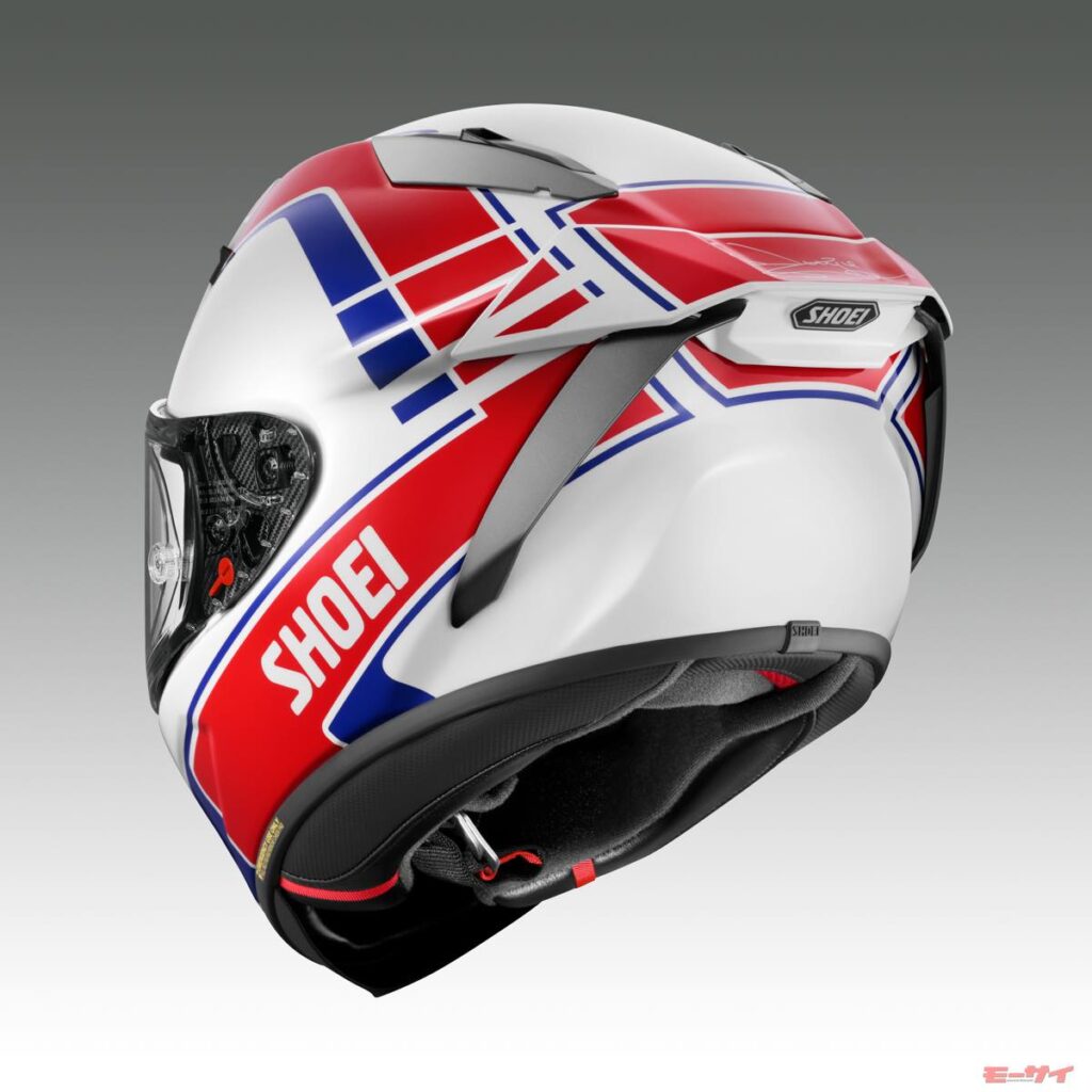 SHOEIは、強靱なガラス繊維と3次元形状とした有機繊維の複合積層構造を基に高い弾性性能を持つ高性能有機繊維をプラス、軽量でありながらも剛性弾性に優れる高性能なシェル構造、AIM+(Advanced Integrated Matrix Plus Multi-Fiber)を採用し、FIM規格(FRHPhe-01)とMFJ公認を取得したフラッグシップヘルメット「X-Fifteen」に、ロスマンズ・ホンダからロードレース世界選手権(WGP)500ccクラスに参戦し1987年にチャンピオンを獲得したワイン・ガードナー選手仕様の「X-Fifteen GARDNER(ガードナー)」を設定する。発売は2026年3月で、価格は税込み10万3400円。