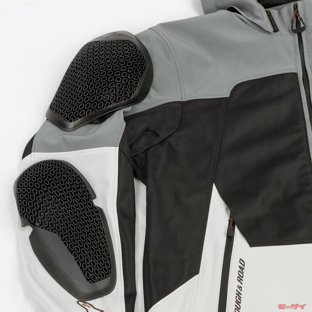 フロントポケットに加えて、胸のスリットポケット、背面ポケット、簡易防水インナーポケットなど収納も豊富。フードは着脱式で、リフレクターも備わる。肩と肘にはNucleonFlexPlus(CEレベル1)プロテクターを標準装備。胸部と背中にも別売りのプロテクターを装備可能だ。