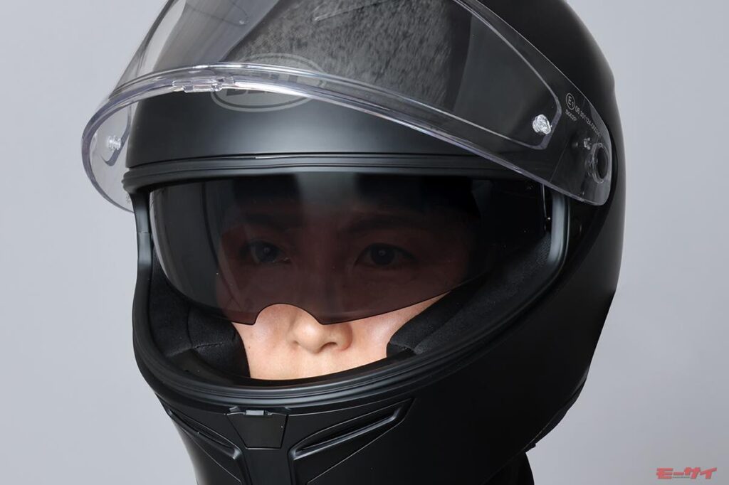 シールドはセンターロックを採用(カラーはフリップブラック/ホワイト)