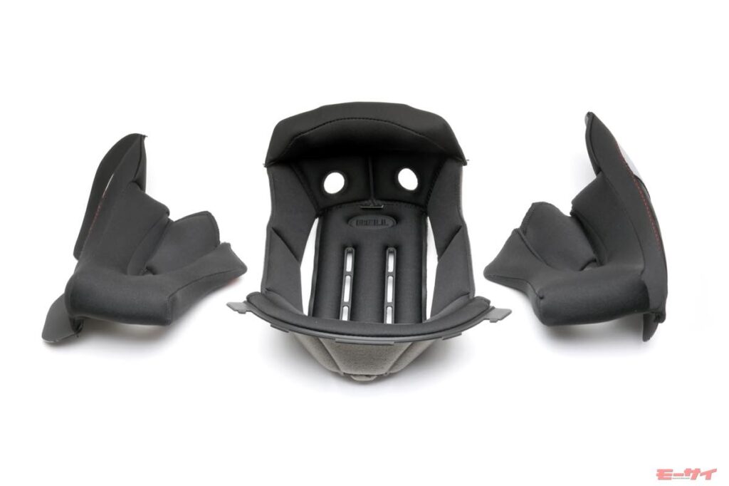 あごに2つ、頭頂部に2つ、計4か所のベンチレーションを装備。アウトレットは後頭部に2つ備わり、ヘルメット内の熱気をスムーズに排出できる。内装は着脱可能で外して洗濯ができるなど、快適性にもこだわっている。