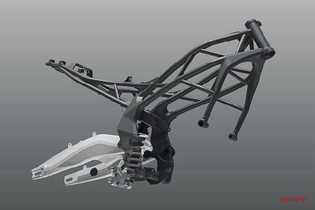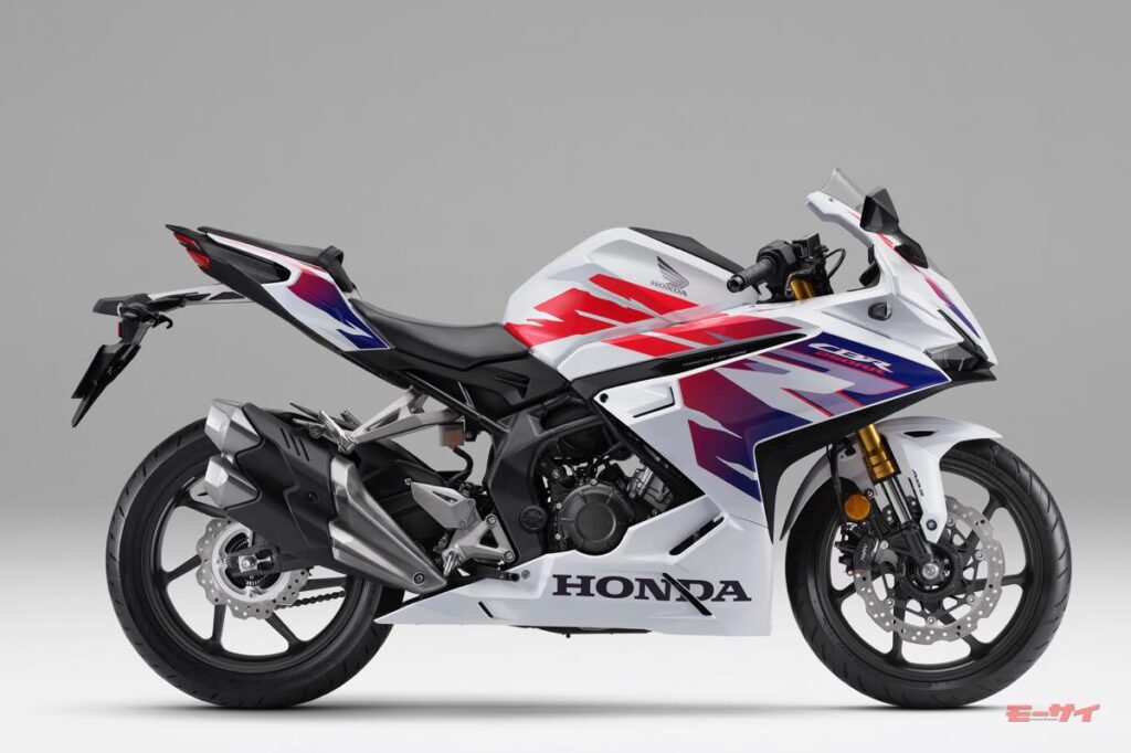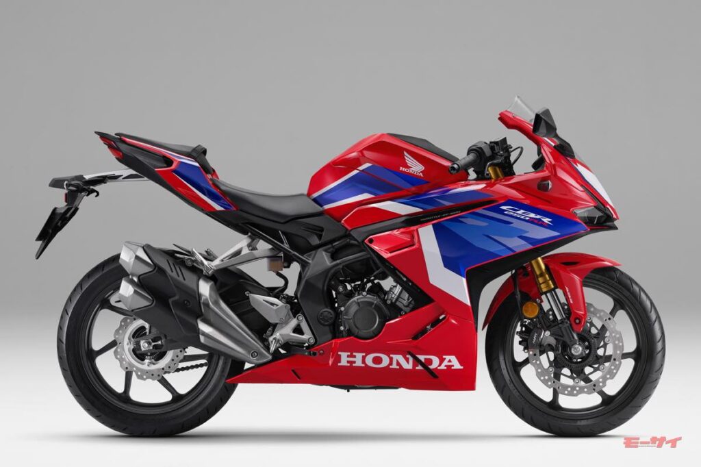 CBRの搭載するDOHC並列2気筒の最高出力は、登場当初の17年は38ps/12500rpmだったが、20年にアシストクラッチを新採用しつつ新形状ピストンでの高圧縮化と各部のフリクションロスの低減、点火時期や吸気系部品の最適化などで41ps/13000rpmにアップ。そして23年にも、ピストンリング、シリンダーヘッド、カム、吸気ポートなど細部の見直しで42ps/13500rpmへと出力を向上して今に至る。