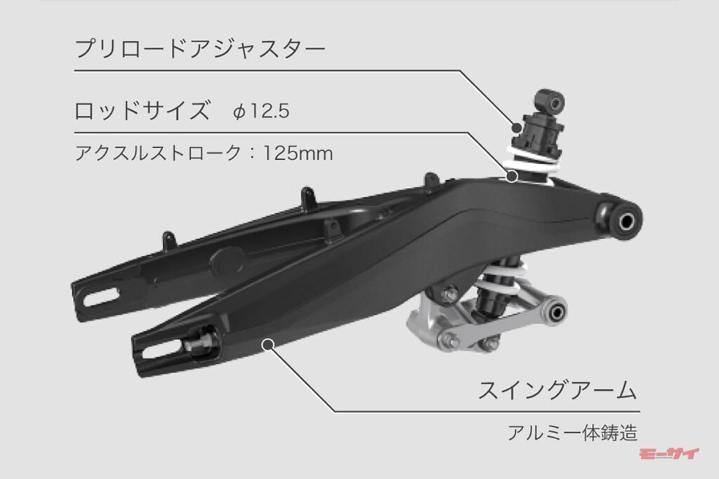 ■寸法・重量 全長2065 全幅725 全高1110 軸距1390 シート高790(各mm) キャスター24°30′ トレール92mm タイヤF110/70R17 M/C 54H R140/70R17 M/C 66H 車両重量168kg