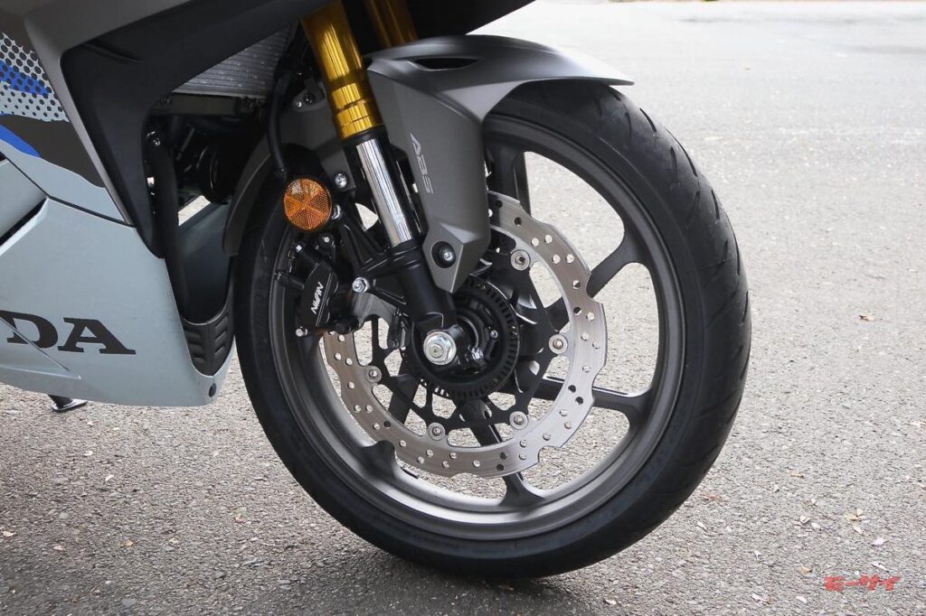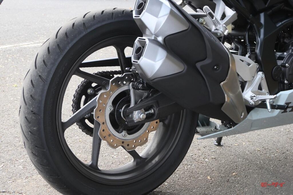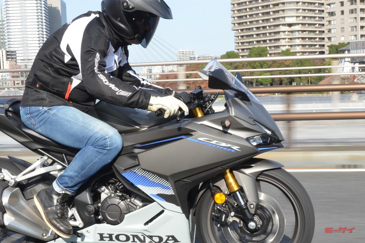 水を得た魚よろしく、加速していくCBRはストレスフリーの刺激を味わわせる。ハンドリングはすごくシャープというわけではなく、相応にフレキシブルかつ安定感のある挙動だ、ここでもサスペンションはコシがありつつ丁寧な路面追従性を見せるが、前後に標準装着のラジアルタイヤ(ダンロップGPR300)の恩恵もあるだろうと感じた。