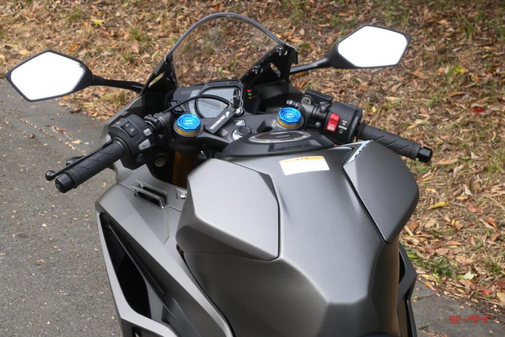 高速道路を突き進む際の挙動も、安定している。一般道から良好な追従性だったサスペンションは高速域でもいい仕事をしており、少し大きめな継ぎ目の凹凸でも、スタタンッと滑らかに通過。そして、カウルの整流効果も相応に効いており、上体を少し低めに構えればうまく風の直当たりをいなしてくれる。車体が軽量でフルカウルの側面積が相応にあるため、横風や乱流の影響を受けるものの、エンジンパワーも含めた性能に不満を感じる場面はまったくない。