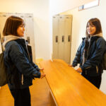 二輪教習の生徒が使う二輪棟は、女性専用でロッカールームとシャワー室まで完備!真夏の教習で汗だくになった日や、雨の中の教習でも、しっかりリフレッシュできそうです。大きな鏡もあって、メイク直しもできるので、教習を受けた後に予定があっても安心です。しかもこのロッカールームはオートロック!女性に優しい環境がしっかり考えられているのが伝わってきて、気分が明るくなりました。