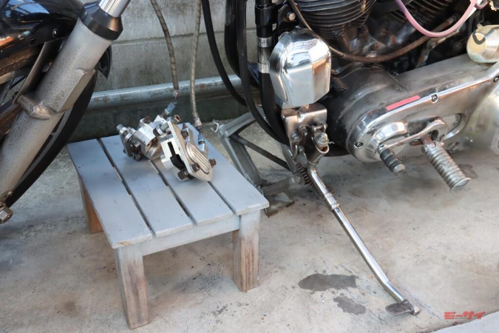 しばらく前にハンドルポストの平行修正を終えたことで、取り回しが幾分楽になったものの、いかんせんディスクブレーキの抵抗感は否めない。そりゃ、長年動かしていなかったためにローターは錆びてるし、ディスクブレーキのパッドやピストンも動かしていなかったのだから、ホイールがスムーズに転がる訳がありません。