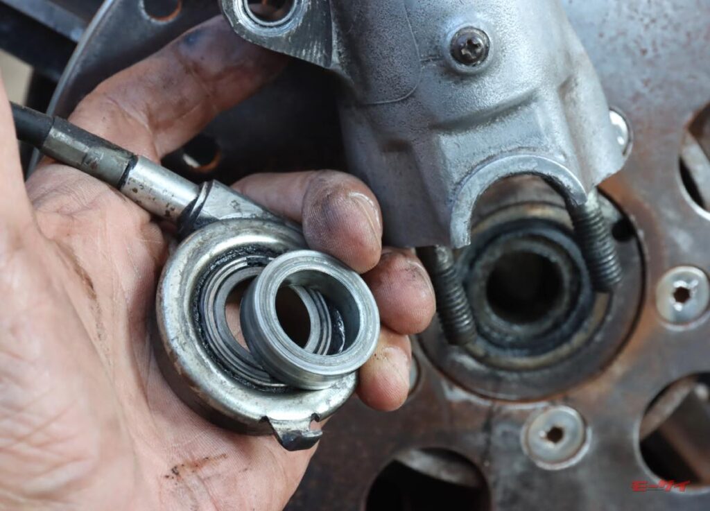 これでローターの抵抗感は減ったし、ホイールも綺麗に蘇った感じになりました。ホイールベアリングは早急に替える必要はなさそうなので、とりあえず型番を撮影しておき、新しいグリスを塗り込んでおきました。