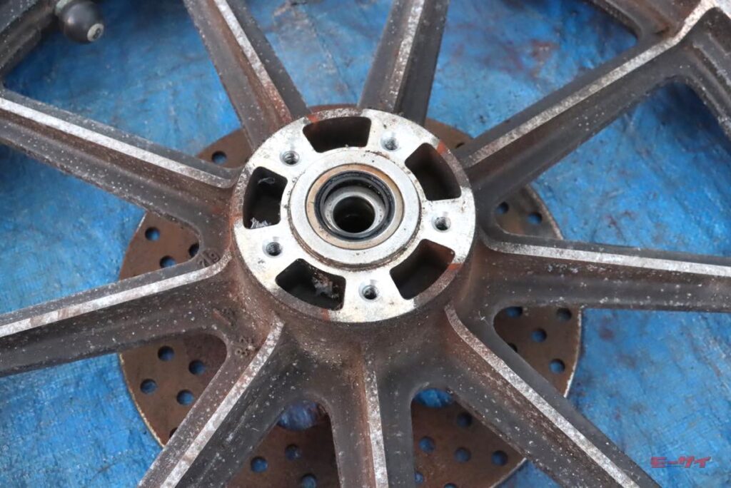 ■白錆を落とし、黒塗装の抜け切っていたホイール復元! さらにはサビサビなローターも復活!?