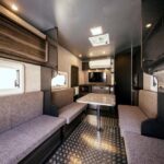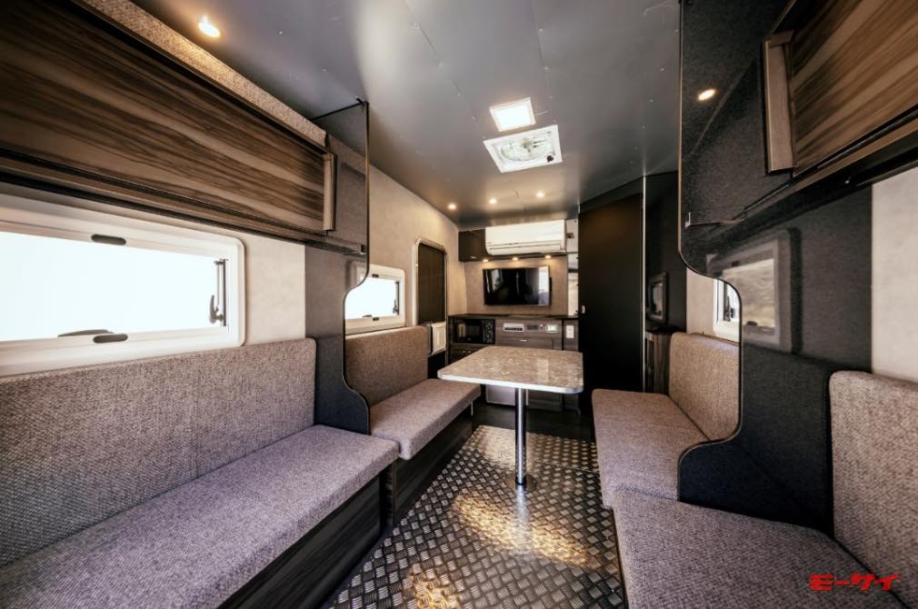 4タイプの車内レイアウトをラインアップする「TRAILWORKS 502」ですが、そのうち「Toy Hauler Living Garag」と「Toy Hauler Lounge」はバイクの持ち運びが可能。価格は426万8000円〜で、内装タイプや装備品によって異なります。