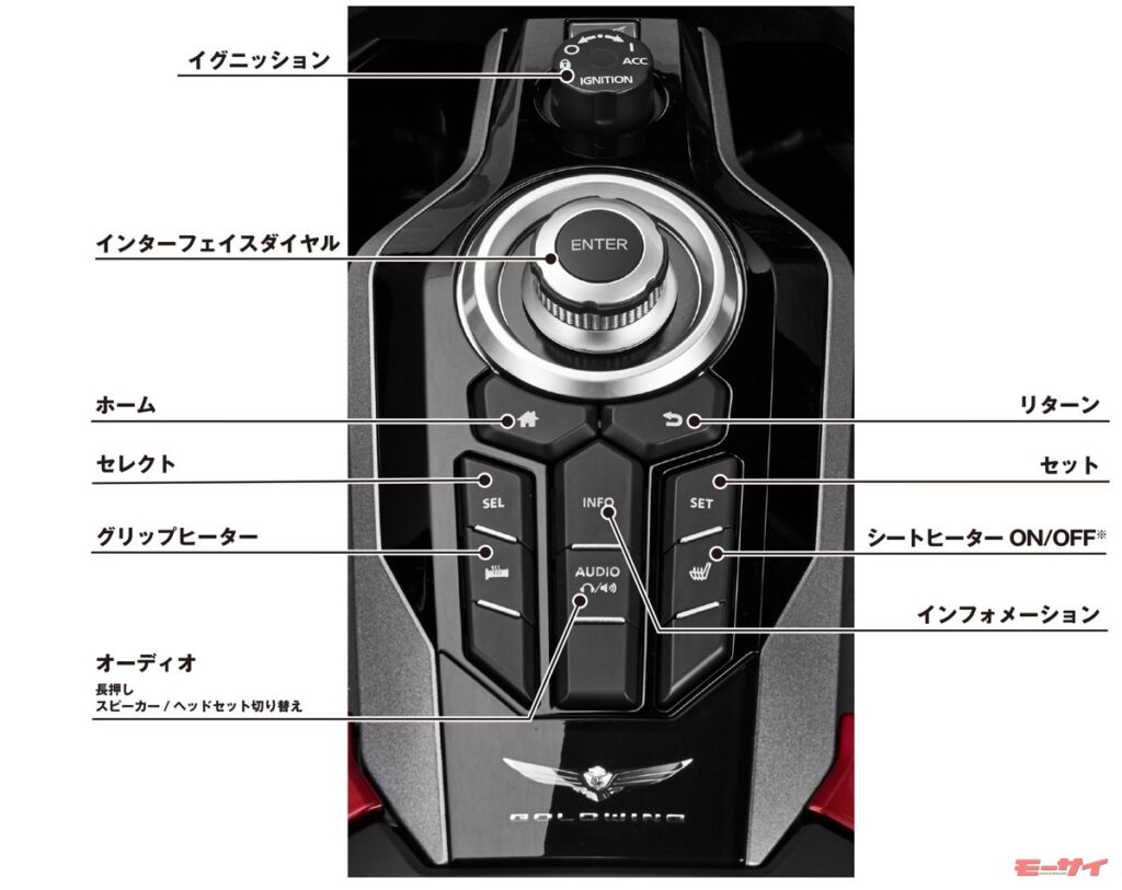 そのうちの一つがグリップヒーターとシートヒーターの標準装備。ゴールドウイングは防風性能がたいへん優れているものの、それだけでは防寒性能は満たせません。やはりライダーの身体を直に温めることが必要。身体が冷えなければ身体機能は維持できるので、より安全に長距離を移動することが可能です。