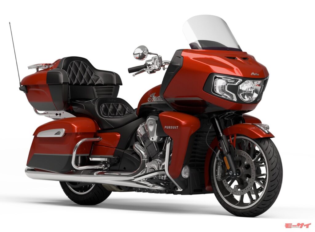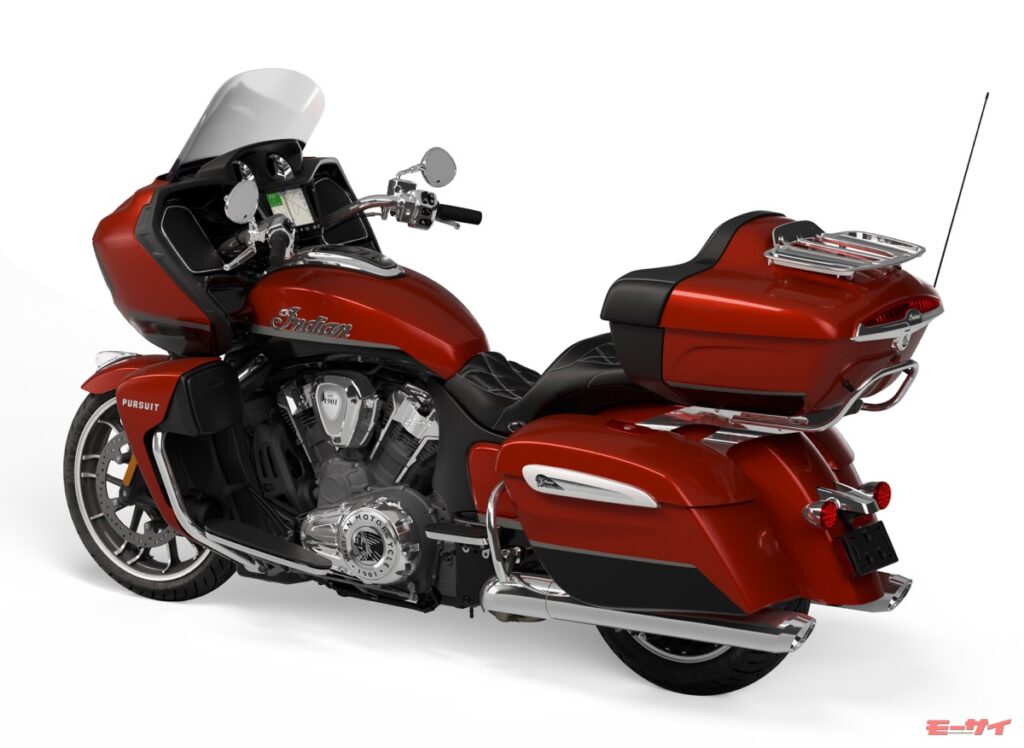 インディアンにはツーリング系のモデルもたくさん用意されており、そのトップエンドに君臨するのが「パースート リミテッド」。グリップヒーターはもちろんシートヒーターも完備されています。