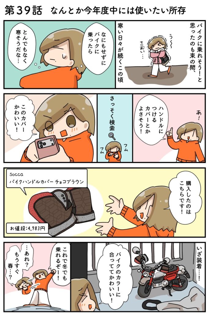 第39回目は、冬のバイク乗車に備えてあるものを買ったお話です。
