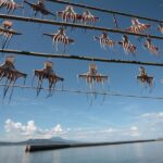 たくさんの干しダコが吊るされている「天草ありあけタコ街道」。