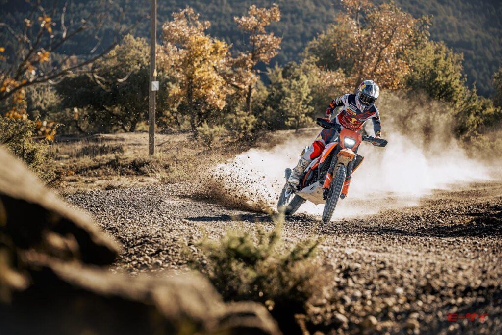 同車の特徴は、398cc単気筒エンジンを搭載したスリムでコンパクトなボディワーク、前後とも230mmを確保したWP製APEXロングトラベルサスペンションを採用したこと。そして、フロント21インチ/リア18インチのスポークホイールに組み合わせたメッツラー・カルー4タイヤ、さらにオフロードABSモードやオフロードライドモードなどの電子制御デバイスが相まって、390エンデューロRならではの卓越した走行性能でアスファルトからオフロードまで、スポーティな走りを提供する。