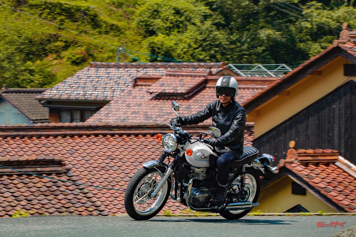 なお、W800は造形にこだわった空冷バーチカルツインエンジンを搭載し、360度クランクならではの等間隔の燃焼パルスがテイスティな排気音を奏で、快適なクルージング性能を発揮。そしてフロント19インチ、リヤ18インチのワイヤースポークホイールと細身のタイヤが、往年のクラシックバイクの雰囲気を漂わせながらも、21世紀にも通用するライディングフィールを実現している。またクロームメッキの前後フェンダーほか、入念な仕上げられた質感の高い各部の構成部品が、所有感を満たすネオクラシックモデルだ。