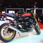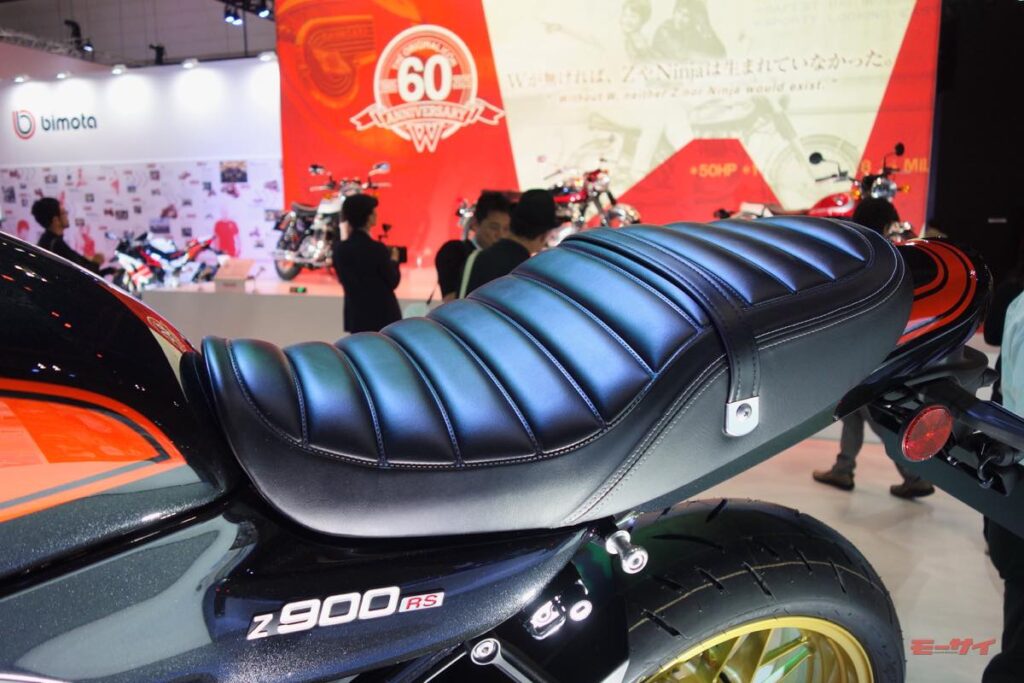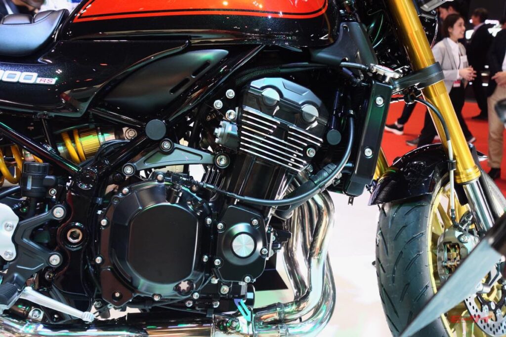 そしてエキパイからマフラーにかけても変更。これは先行登場した新型Z900シリーズベースのエンジンをRS専用に見直したもので、ヘッダーパイプ部分の形状、従来より70mmほど延長したサイレンサー、エンジン下にあるプリチャンバー部を前よりコンパクトにするなどの変更が施された。またエンジンはETV(電子制御スロットルバルブ)搭載で低・中回転域の操作性を向上しつつ、高回転域ではより力強い特性に変更。