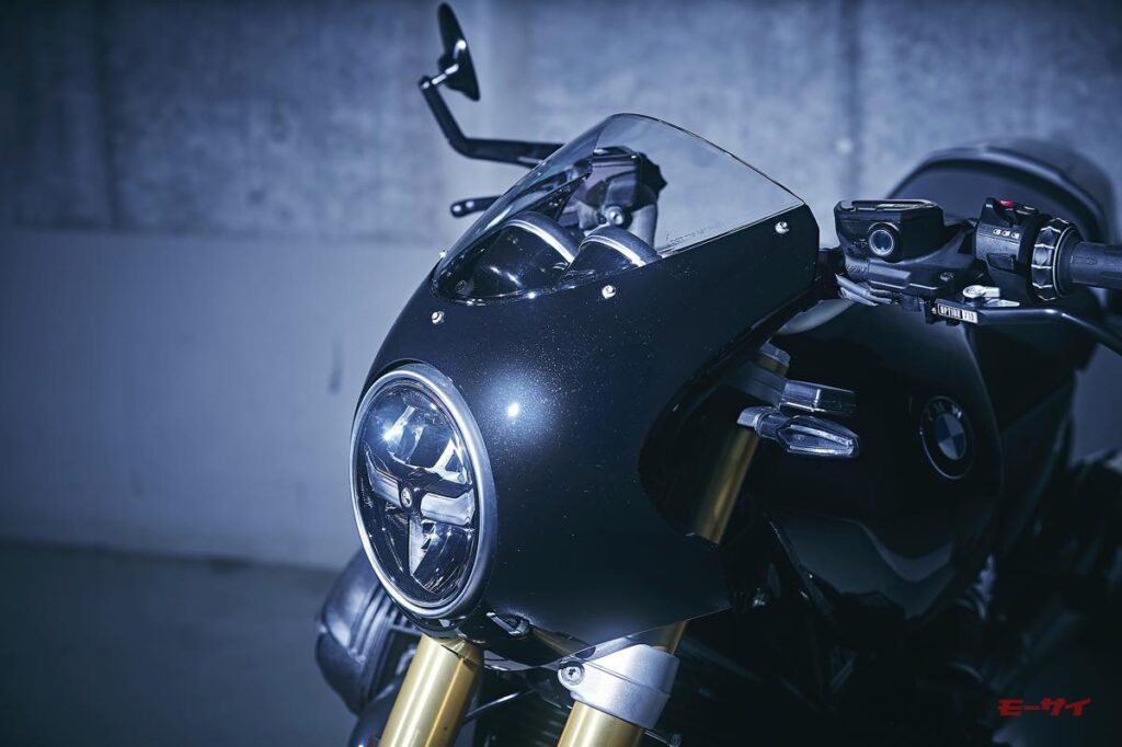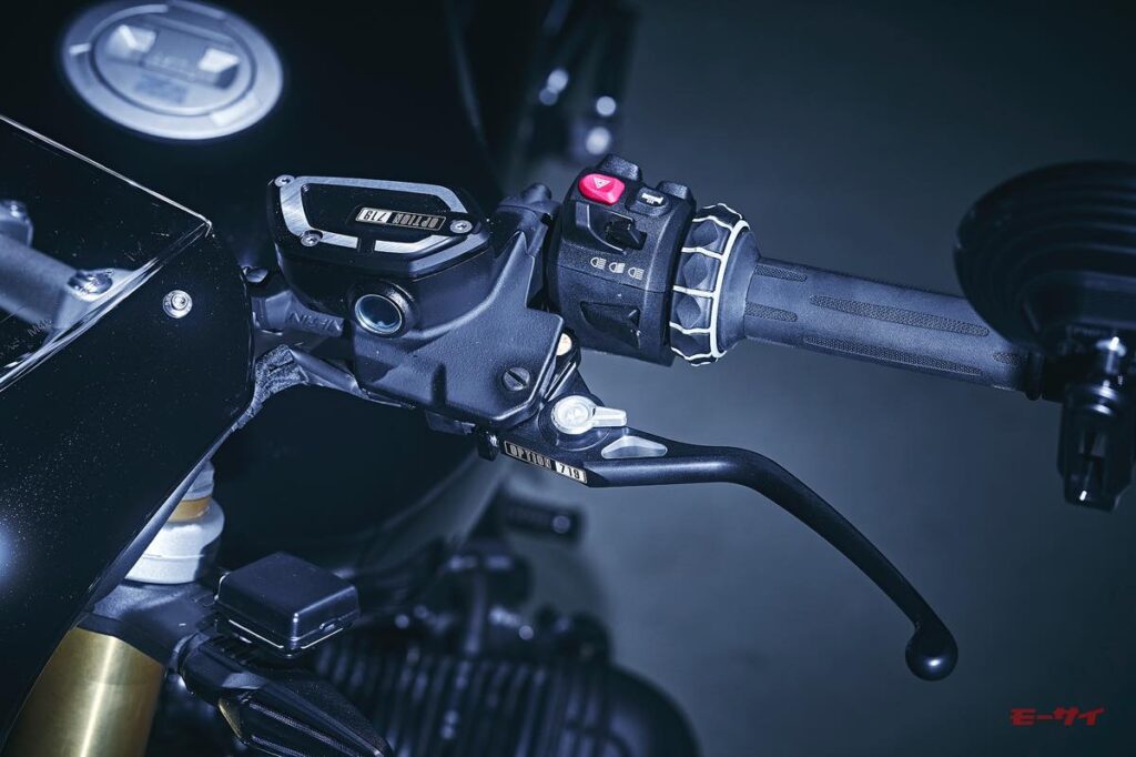 R 12 nineT LIMITED EDITION は、70年代の名車BMW R 90 Sを彷彿とさせるフロントカウルをはじめ、シートエンドにリアセクションカバーを装着してモダンなカフェレーサースタイルを表現している。また、ブレーキレバーとクラッチレバーにはOption 719のハンドルレバーShadowⅡを、ミラーにはハンドルバーエンドミラーShadowを装着してコックピットの質感を高めている。