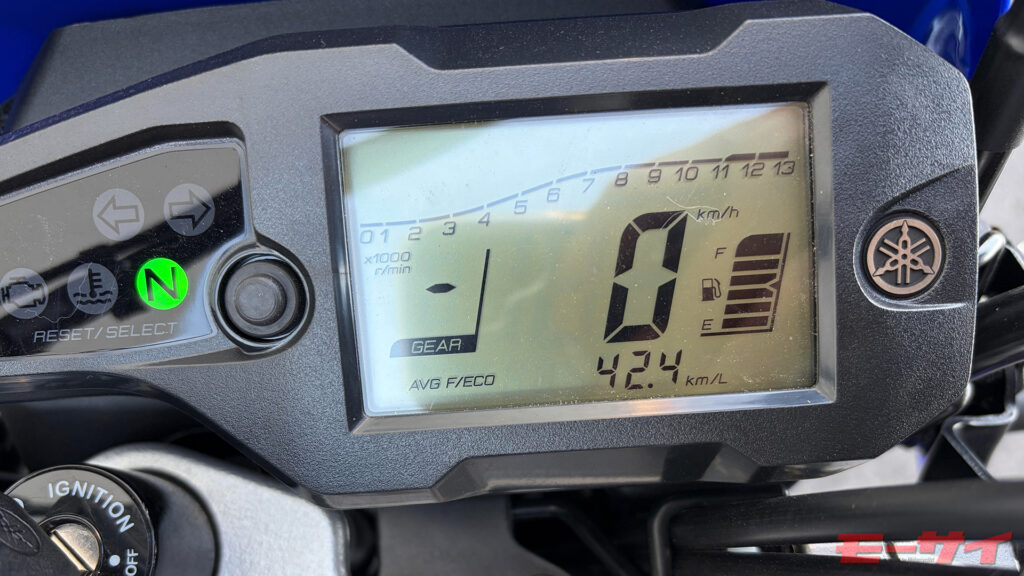 燃費も良好で、表示上は42.4km/Lを記録。8.1Lタンクと組み合わせれば、300km以上の航続距離が期待でき、給油の頻度が少なくて済むのもツーリング向きと言える。