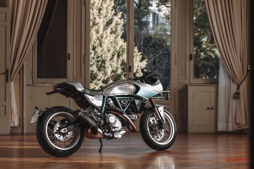 心臓部には、ドゥカティのアイデンティティである空冷2バルブL型ツイン「デスモデュエエンジン(803cc)」を搭載する。最高出力は73馬力を発揮し、最新のユーロ5+規制にも適合するが、このエンジンは、1970年代から続くドゥカティの技術的基盤に忠実でありながら、ライド・バイ・ワイヤの採用により、滑らかで俊敏なレスポンスを実現。また、足回りや電子制御も最新水準に引き上げられている。