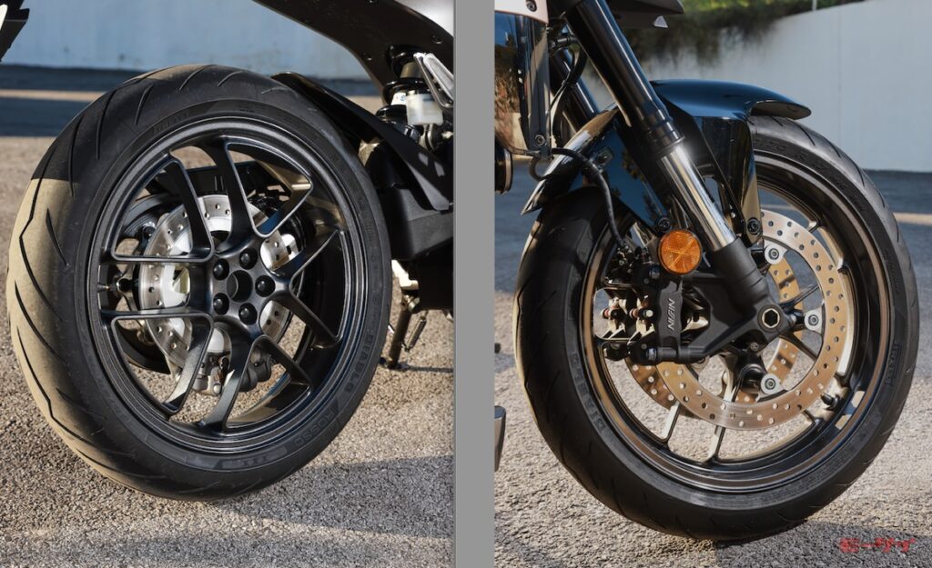 WN7の車体寸法のベースとなったCB750ホーネットのリヤタイヤサイズは160/60だが、WN7は150/60となっている。フロントタイヤサイズは120/70で共通。